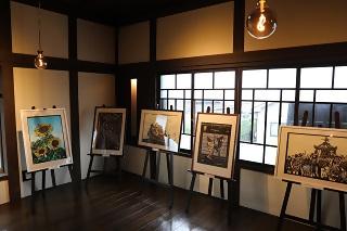 建物の2階には、流山本町地域在住の切り絵作家・飯田信義さんの作品が並びます。